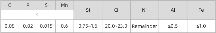 工作温度高达1200°C。其化学成分具有良好的抗氧化性结构稳定、电气物理性能稳定、高温机械性能好、冷变形塑性好、焊接性好、长期使用不脆性断裂、抗氧化性强等特点。
